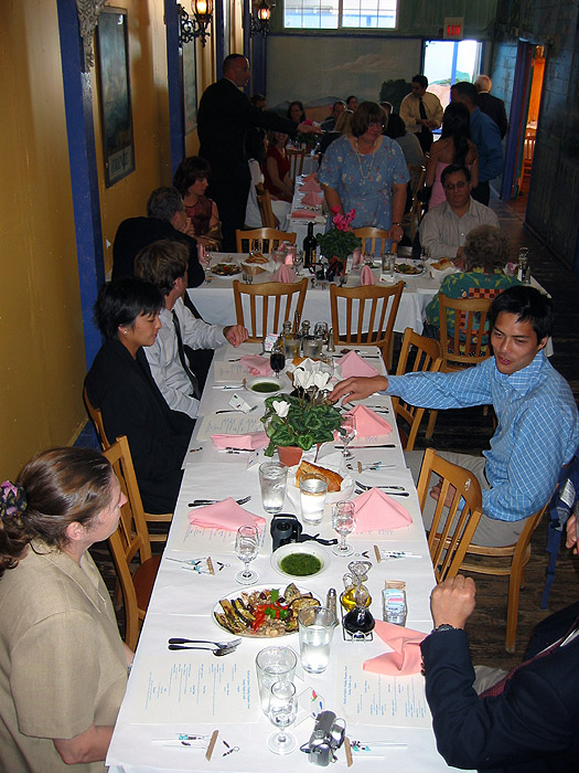 Attendees settle down for reception lunch at Bella Mangiata in San Mateo.