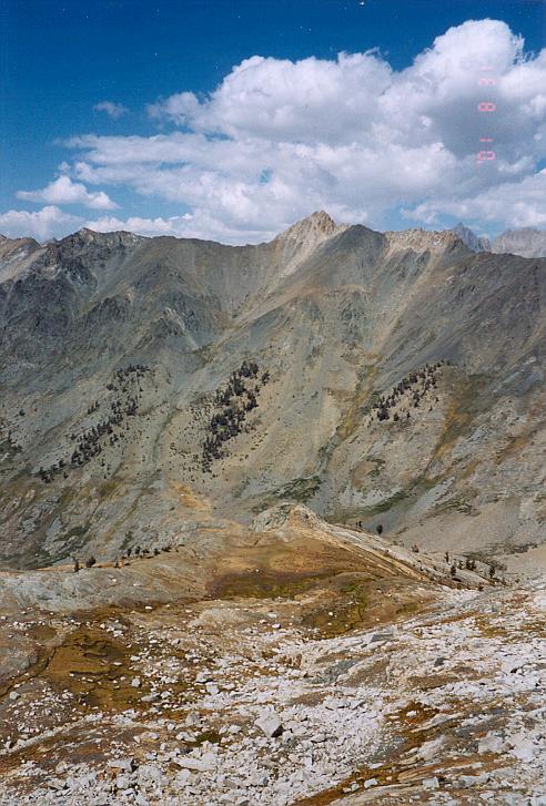 View of the Black Rock Pass trail and Black Rock Pass (11,700') itself from Glacier Pass (11,200').