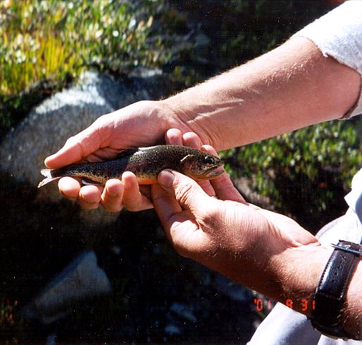 One of the four Golden Trout that I caught and ate from Spring Lake. They were in the 5-8" range--average in my experience. Great fun!