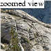 By this time, I had not yet forgotten my "premonition". So as I ascended the aforementioned slabs, maybe this is why I backed down from an exposed spot as Tim climbed about 40 feet above me. It happened fast, but I saw Tim's foot dislodge a 20-pound rock. It slid, then bounced once, and I could see that it was going to be a close call. I just ducked my head and closed my eyes...WHACK! Luckily the thing has not yet gone into a more ballistic trajectory, because it barely stunned me. But without a helmet, I might have a broken nose, lacerations, or worse. Phew.