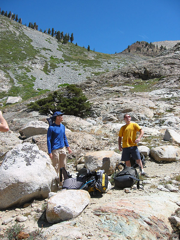 Jacob and Robert joking around midway up the ascent to Glacier Pass.
