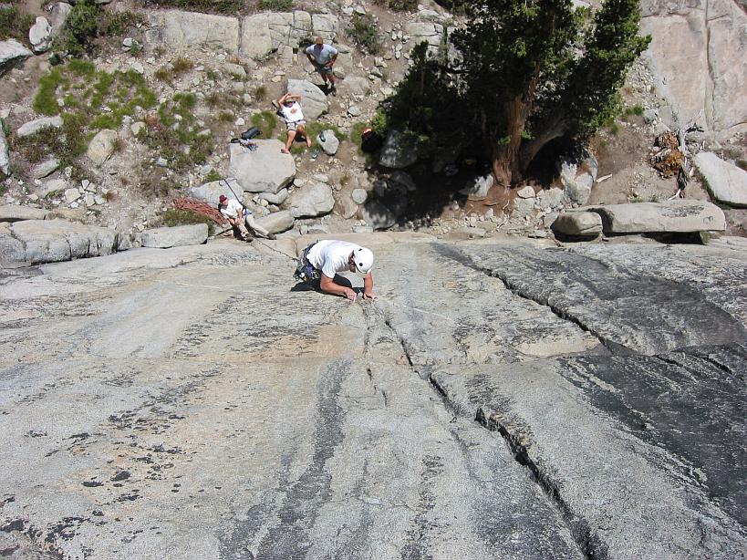 Morgan places a nut on a 5.8 crack at Tiger Wall, Courtright Reservoir, CA.