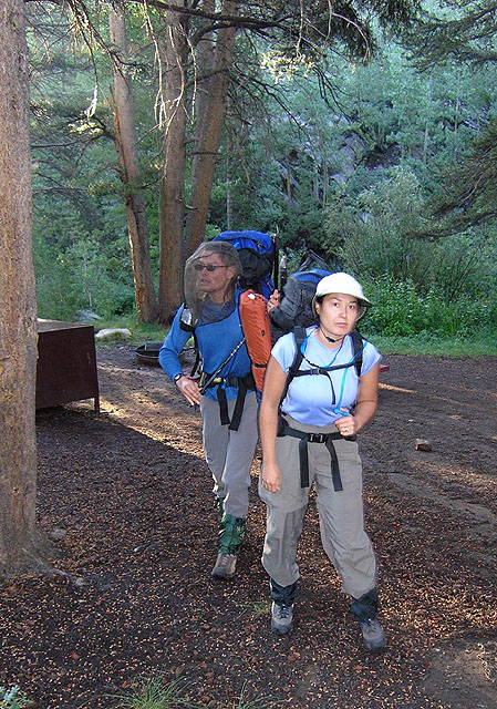 Kimberly and Robert on the trail after breaking our camp near the North Lake Trailhead.
