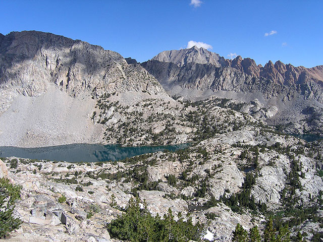 Piute Crags and Upper Lamarck Lake from the use trail to Lamarck Col.