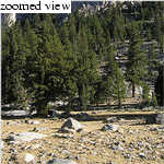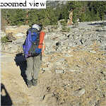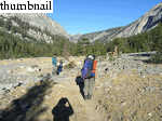 Not much to say about the last day: it was the 13.5 miles from our campsite on Woods Creek to our car at Roads End. It was hot and smoky (courtesy of a forest fire near Cedar Grove), but had some nice spots. We eschewed the usual salami/cheese on tortilla lunch, in favor of a burger at the Cedar Grove concessionaire. We arrived 5 minutes before closing! Unfortunately, some bonehead's truck rolled back into our rented Toyota Prius, moving it 4 feet laterally and smashing the front bumper against a log. Luckily the guy gave his insurance to the ranger, so we shouldn't have any trouble. Keeping our fingers crossed!