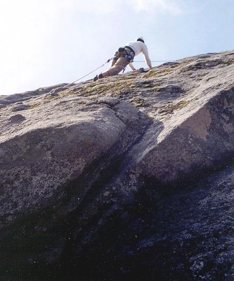 Morgan near the top of the climb, around the second bolt. My body angle gives you an idea of the rock's slope angle.