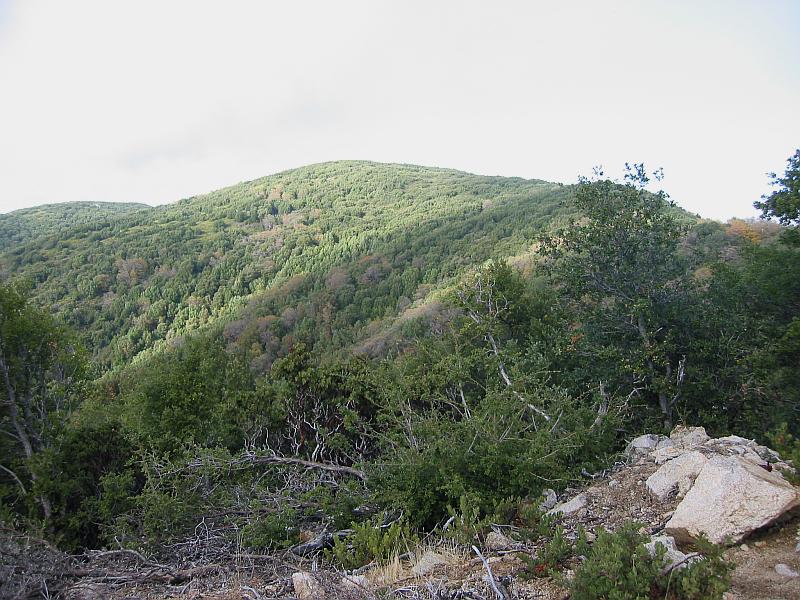 The rounded summit of Mount Carmel as viewed from the summit of Devils Peak.