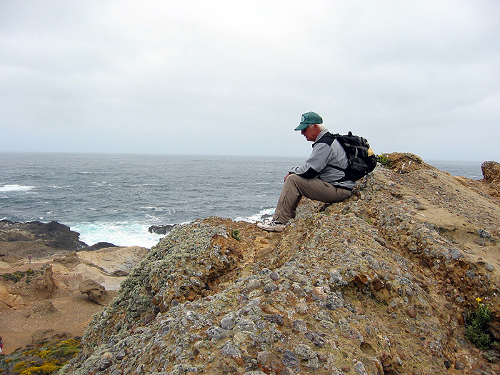 Rob relaxing on a rock above Sea Lion Point. Notice the awesome (and solid) conglomerate rock.