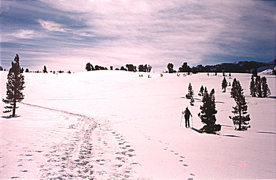 Kim ascending gentle terrain above Winnemucca Lake on the PCT.