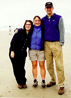 Ana Garanito, Kim, and Morgan on the beach behind Scripps Oceanographic Institute.