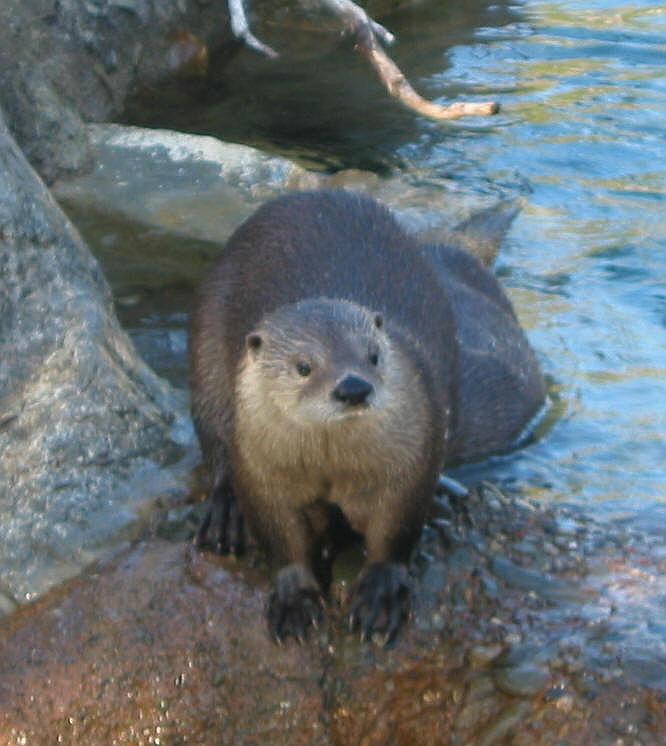 River otters look like aquatic ferrets. Check out the webbed feet! Man, they're cute. Playful, too.