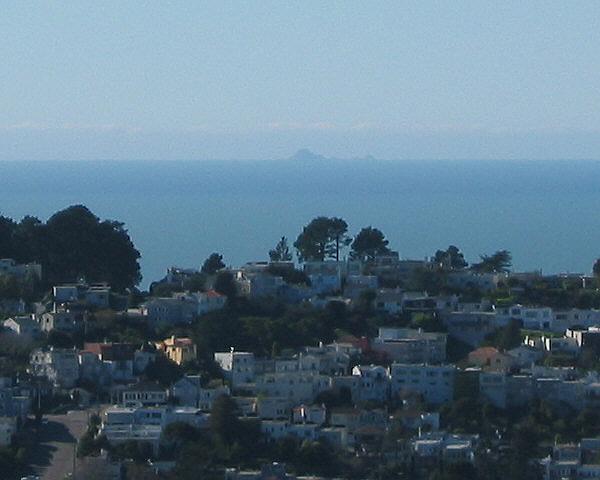 Southeast Farallon Island, approximately 30 miles distant, viewed from north summit of Twin Peaks.