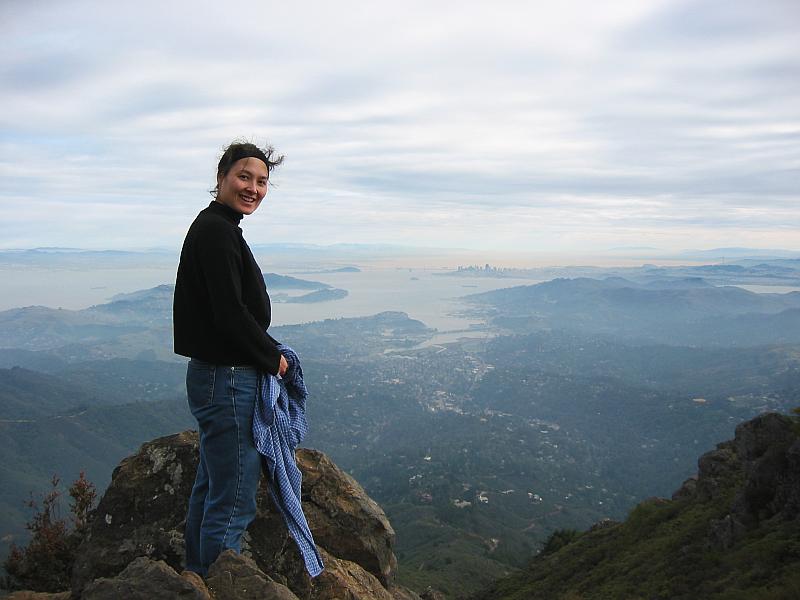 Kim and the stellar views from 2500-foot Mount Tamalpais toward San Francisco.