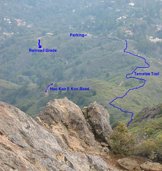 View from Mount Tamalpais summit down the Temelpa Trail, the trailhead of which is at the end of Summit Avenue in Mill Valley.
