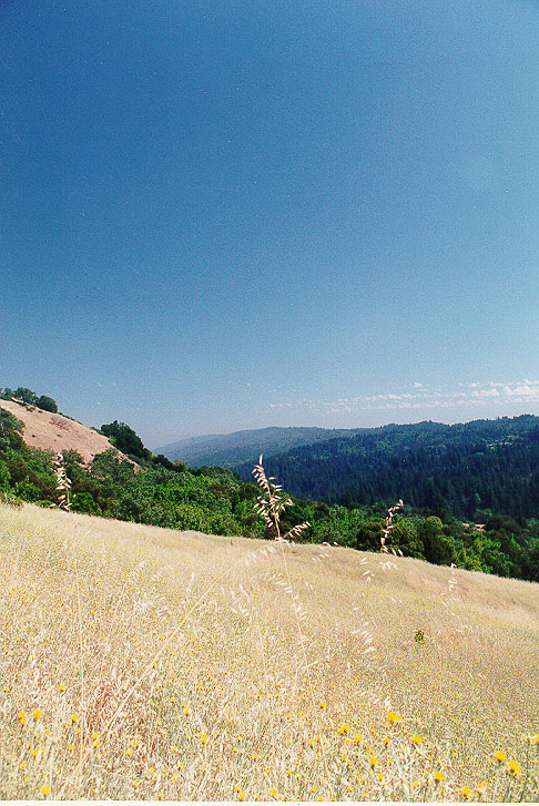 Looking south, down the San Andreas rift, from the west slope of Black Mountain, the high (2800'+) peak behind Palo Alto. It was a punishingly hot August day.