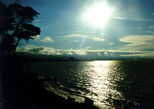 Looking directly into the sun, toward the San Francisco International Airport. Coyote Point State(?) Park is a great place to view the planes as they land on parallel runways 28L and 28R.