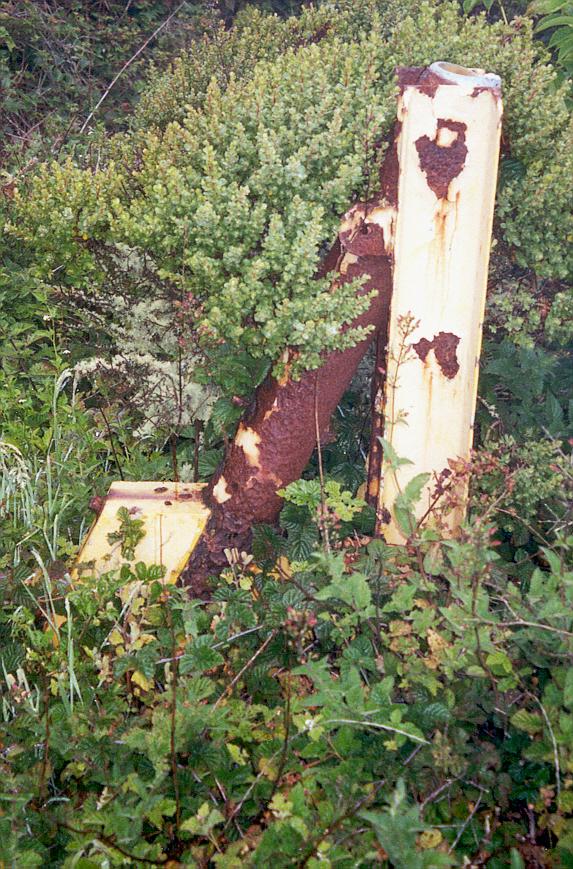 Strange rusted yellow metal apparatus found just north of the Interconnecting Corridor (ICC).