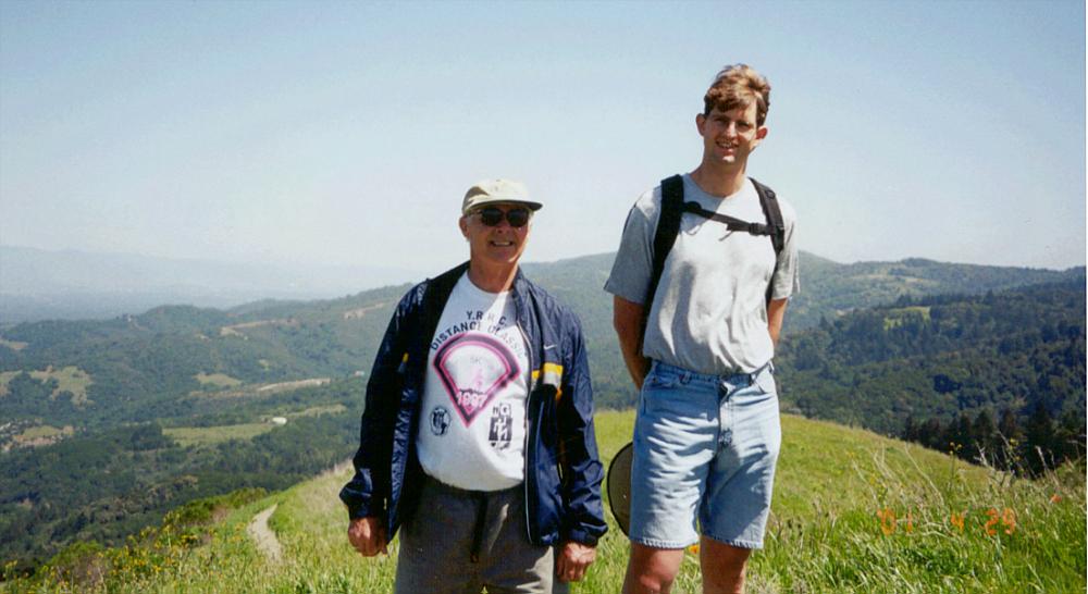 Morgan and Rob at a high point at Windy Hill Open Space. Looking east, toward Palo Alto and San Francisco Bay.