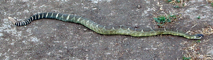 We saw this four foot rattlesnake crossing the Spring Ridge trail in August, 2003.