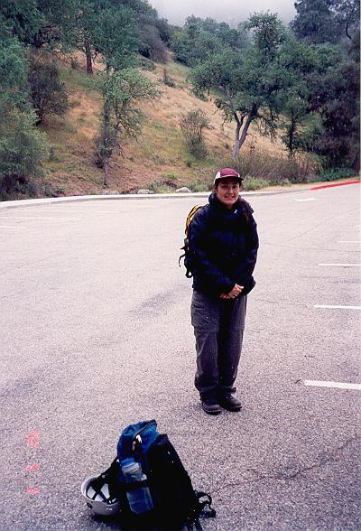 Kim early on a foggy morning at the Pinnacles upper parking lot.