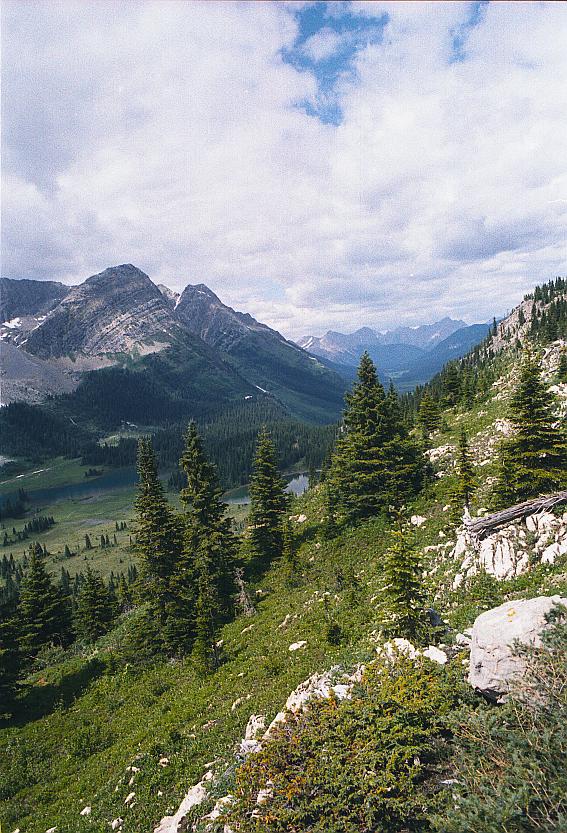 View from Palliser Pass area, looking north, down the Spray River valley.