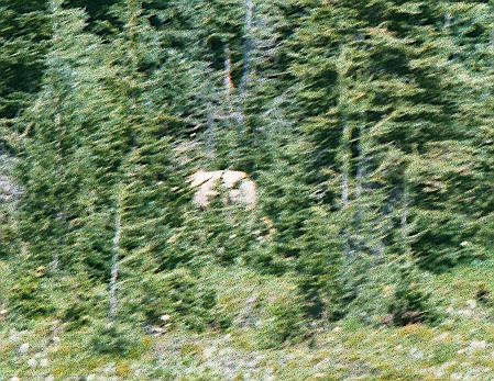 The brownish spot in the center of the image is a grizzly bear. Use your imagination.