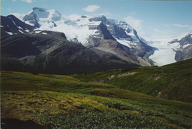 Athabasca Peak and Glacier from Wilcox Pass. Camera pointed west.