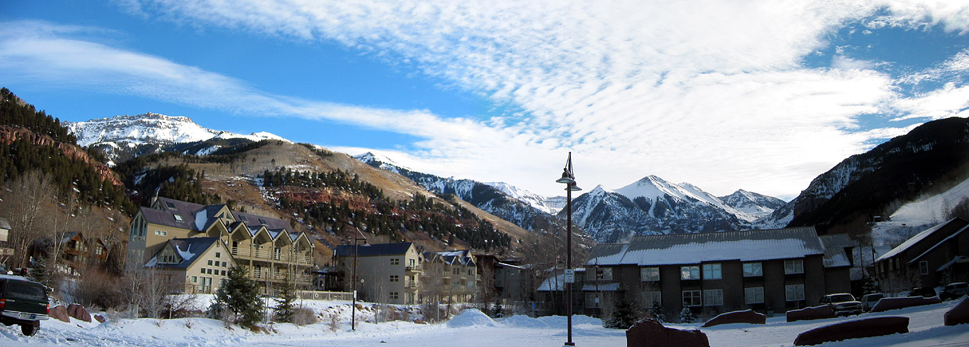 Panoramic image from the Commuter Lot at Telluride. December 21, 2003.