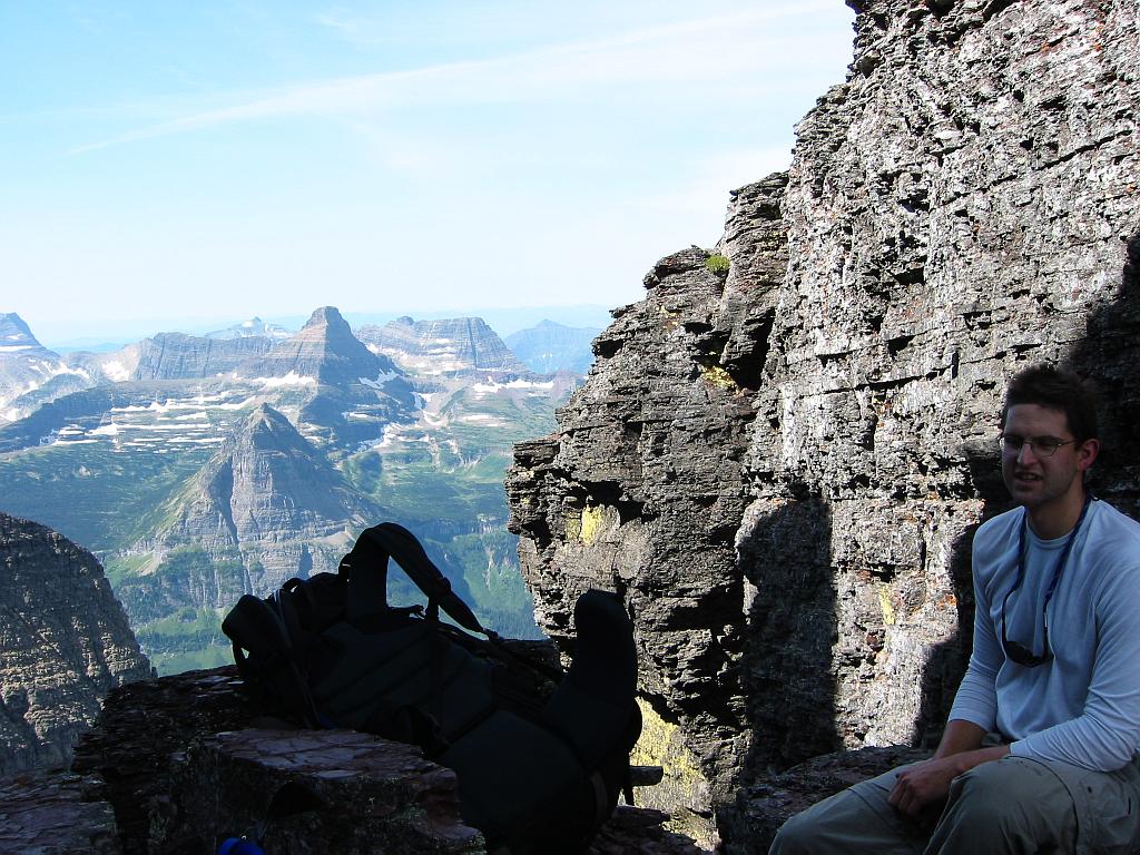 Morgan, tired after struggling without adequate snow cover up the diagonal chute of the eponymous variation of the West Face route on Going-to-the-sun Mountain.