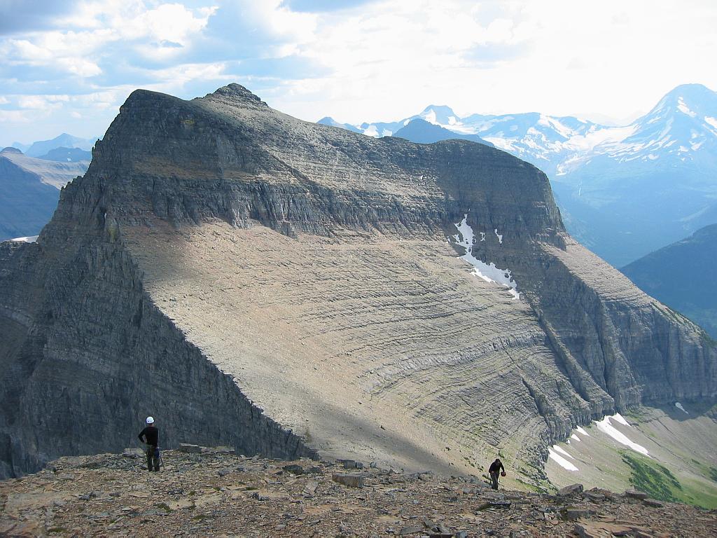 Kim and Robert and grand views of Going-to-the-Sun Mountain from the summit of Matahpi Peak.