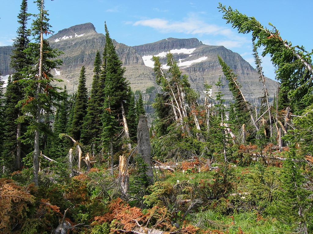 Piegan Peak and the result of a large avalanche.