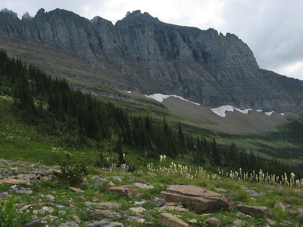 The Garden Wall (and omnipresent Bear Grass) from the Highline Trail.