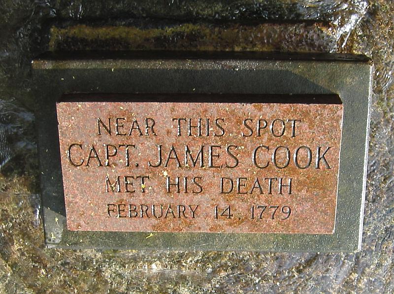Granite plaque marking Captain Cook's murder, not to be confused with the 30-foot-high white obelisk a hundred feet away.