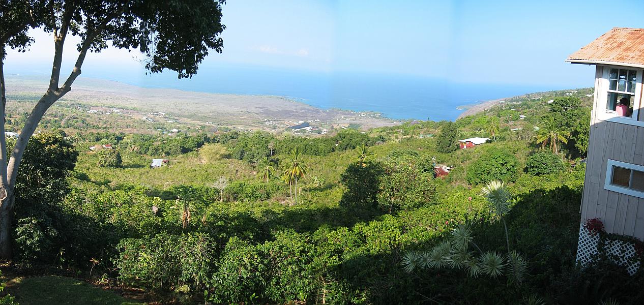 The Kona Coffee Shack (in Honaunau or Captain Cook, I forget) has pretty good breakfast fare with an unbelievable view.