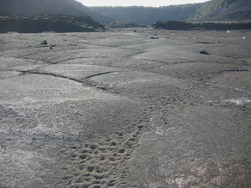 While the floor of Kilauea Iki looks smooth from above, it is actually quite buckled, resembling a giant soccer ball from up close.