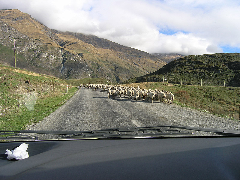 Sheep from road to Rob Roy Glacier trail, Mount Aspiring NP.