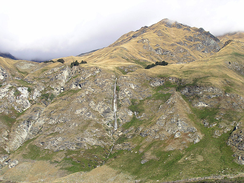 | Incredible views of waterfalls plunging down grass-covered cliffs. Very unique panoramas here--kind of like a mix between Norway and Ireland. I kept trying to compare New Zealand to places around the world, but I couldn't pin it down. Trust me--the country's natural features are wild and truly unique. |