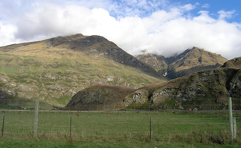 Deer being raised in farm on road to Mount Aspiring NP.