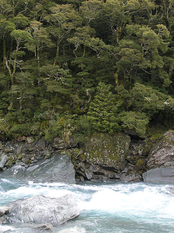 Matukituki River and jungly bush on the Rob Roy Glacier hike in Mount Aspiring NP.