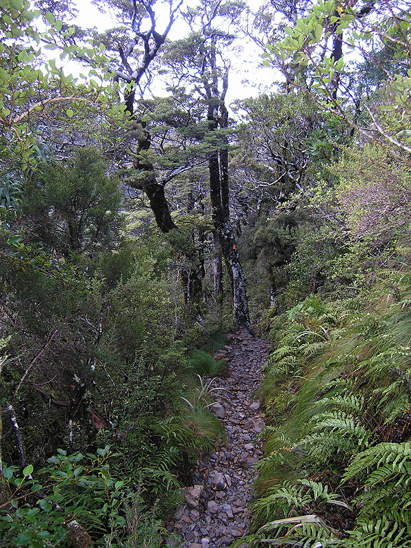 Representative view of the lower Scotts Track--steep, rocky, rooty, and heavily-vegetated.