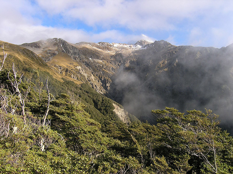 View of Mount Rolleson from the clearing clouds, taken from lower portion of Scotts Track. The clouds never fully cleared while we were on the mountain.