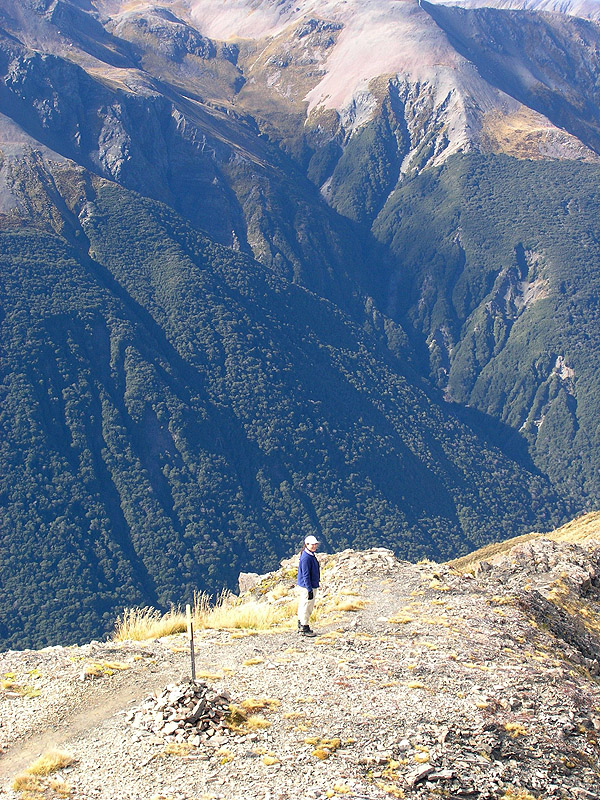 Kim descending the steep, dramatic Avalanche Peak Track.