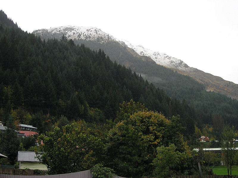 Morning view from the Top Ten Holiday Park, Queenstown, New Zealand.