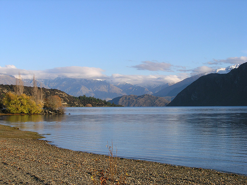 Mouth of the Clutha River, a favorite Lake Wanaka fishing spot. We, of course, saw no fish.