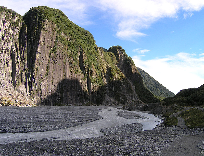 Stunning vegetation-covered cliffs below the toe of Fox Glacier. Somewhat reminiscent of Yosemite, only greener and wilder.