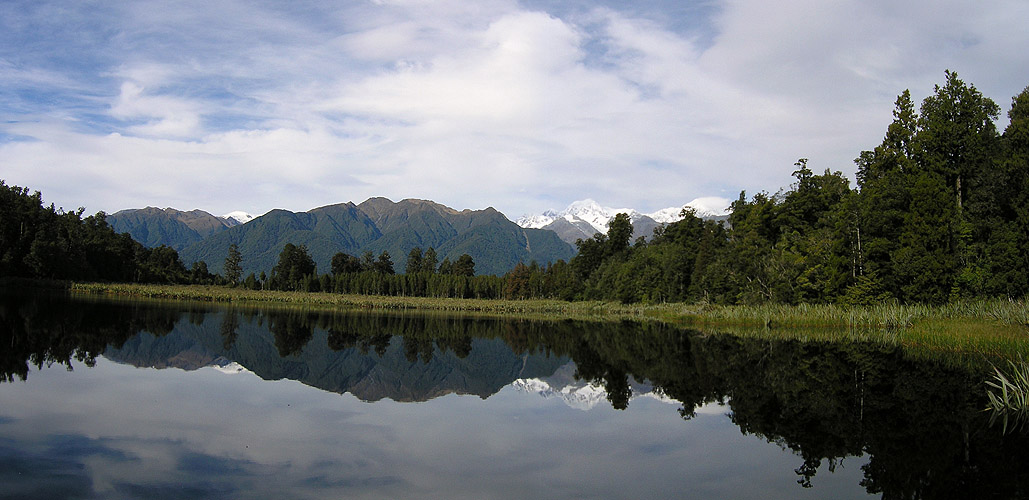 Panoramic view on one of the lakes in the Lake Matheson area.
