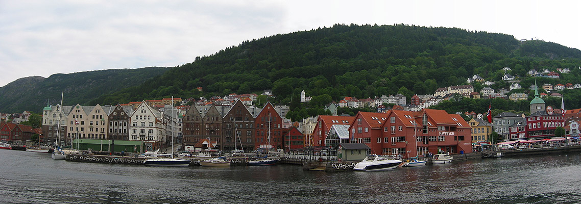 Panoramic view of Bergen harbor, just after getting off the ferry