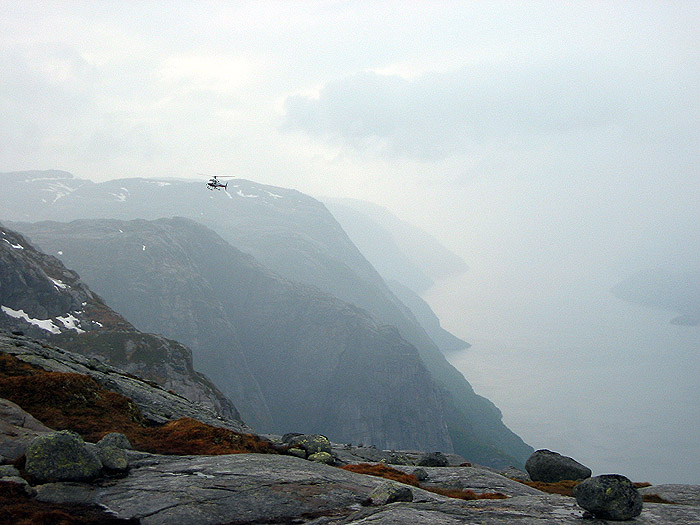 Helicopter comes in to pick up the photographers before retiring for the day (rain).