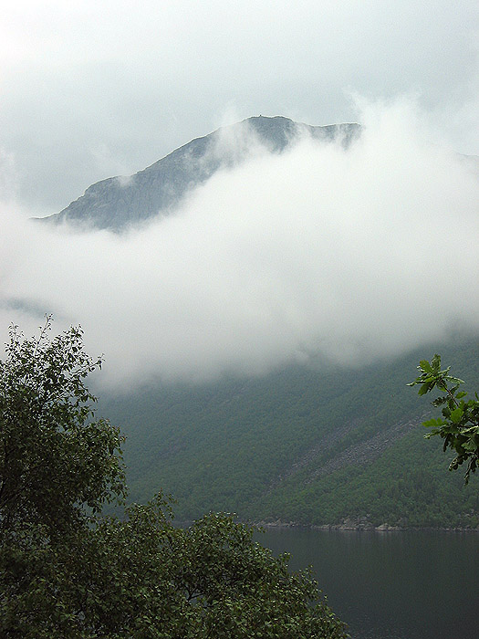 More clouds clearing from the crags above highway 13 near Tau.