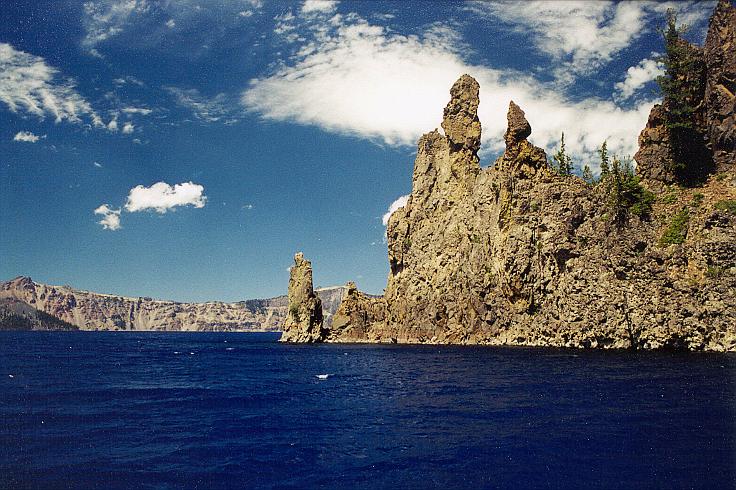 "Phantom Ship", a volcanic dike which protrudes above the surface of Crater Lake, is one of the highlights of the boat tour.